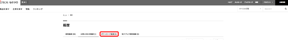 ダウンロードしたカタログの履歴は、下記の手順で確認できます。