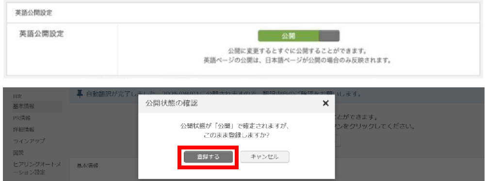 ※翻訳完了から自動公開までは1日となります。手動で公開設定を変更し、即時公開することも可能です。